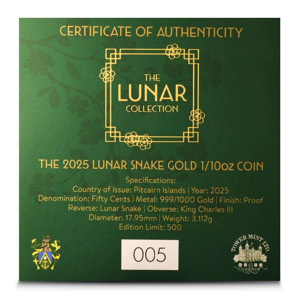 | Product Title | 2025 1/10 oz Proof Pitcairn Islands Gold Lunar Year of the Snake Coin (Box + CoA) |
