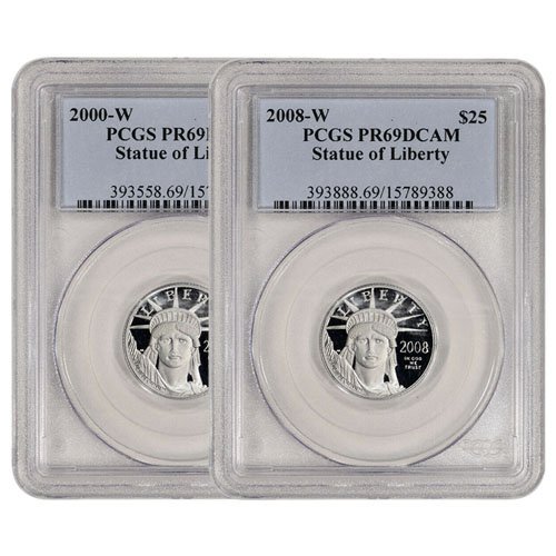The 1/4 oz American Platinum Eagle is being offered in Brilliant Uncirculated condition and is available from years of our choice. Each coin has been produced by the US Mint with .9995 pure platinum and weigh 1/4 troy ounce. Additionally, each coin has a USD face value of $25 and measures 22 mm in diameter and 1.32 mm in width. As fitting the official platinum bullion coin of the US, each 1/4 oz coin possesses a purity of .9995. However, unlike most coins, American Platinum Eagles are often classified as “commodity platinum,” which means that their value is derived exclusively from their size and metal composition as opposed to their rarity and uniqueness. Consequently, these coins have become a popular favorite among those wishing to make a significant investment in platinum.