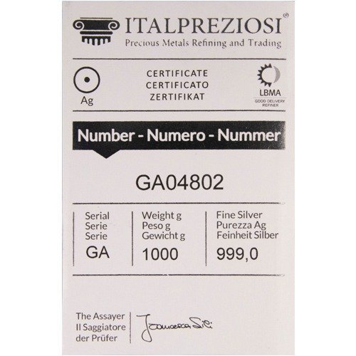 | Product Title | 1 Kilo Italpreziosi Cast Silver Bar (New w/ Assay) |