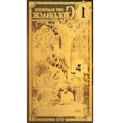 Your purchase of a 1 New Hampshire Goldback Gold Note will arrive in a bundle of 100 notes. These Goldback Gold Notes are created by putting thin layers of gold together between two polymer sheets. Each bundle contains 1/10th Troy oz of total gold content.