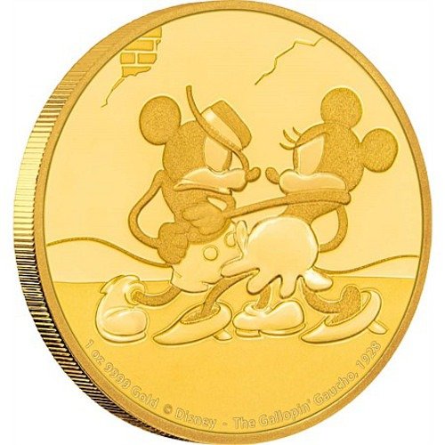 Mickey Through the Ages is a playful and exciting collection of gold and silver coins from the New Zealand Mint. Each new release in the collection features a different depiction of Mickey Mouse from one of the original feature films in the early- to mid–20th century when he made his debut to the world. The 2017 1 oz Niue Mickey Mouse Gallopin’ Gaucho Series Gold Proof Coins are available now.
