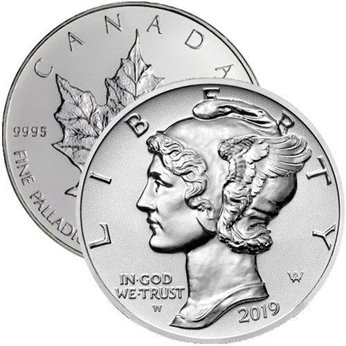 The American Palladium Eagle is the most recent example of a 1 oz Palladium Coin that you could receive in this listing. The Palladium Eagle revives the images of the Mercury Dime from 1916, with Winged Liberty featured on the obverse and the American bald eagle on the reverse. Both designs come from Adolph A. Weinman and the face value of the coin is set at $25 (USD).
