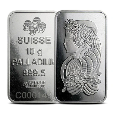On the obverse and reverse of these 10 oz Palladium Bars you’ll find various designs. The specific designs depend upon the mint from which your bar originated, but examples include features such as PAMP Suisse’s popular Fortuna design range or Credit Suisse bullion bars which are great for investment.