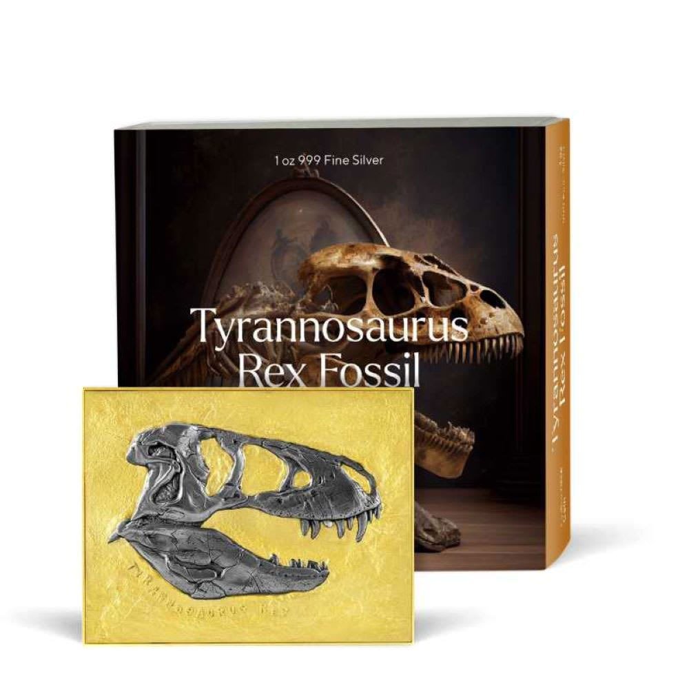 Few creatures in the history of Planet Earth can match the terrifying splendor of the T-Rex. In honor of this magnificent dinosaur, we are pleased to offer a new silver coin featuring the fossil image of a Tyrannosaurus. The high-relief fossil design has received an antique polish, which contrasts beautifully with the gilded backdrop. Today, 2023 15 oz Republic of Chad Bi-Metal Tyrannosaurus Rex Fossil Coins are available to you online.