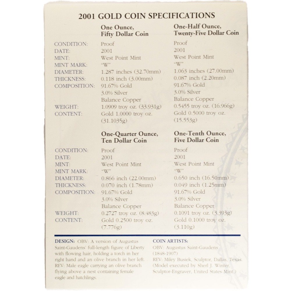 Product Title 2001-W 4-Coin Proof American Gold Eagle Set (Box + CoA)
