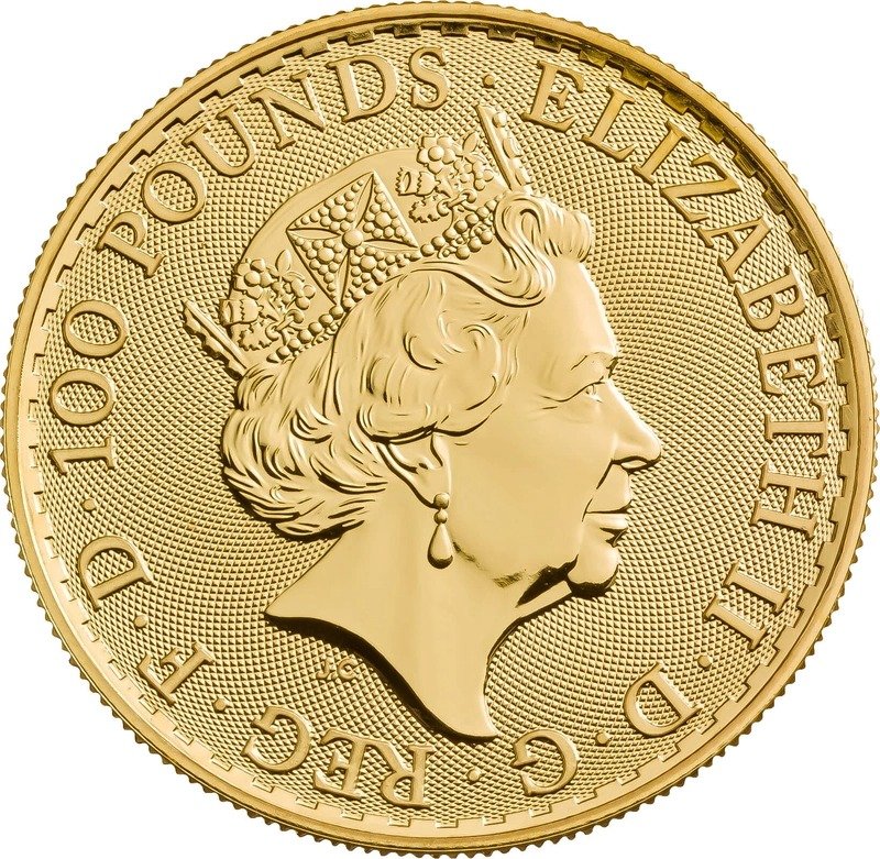 A 2018 1oz gold Britannia coin from The Royal Mint, graded to MS70. A coin with no post-production imperfections at 5x magnification.