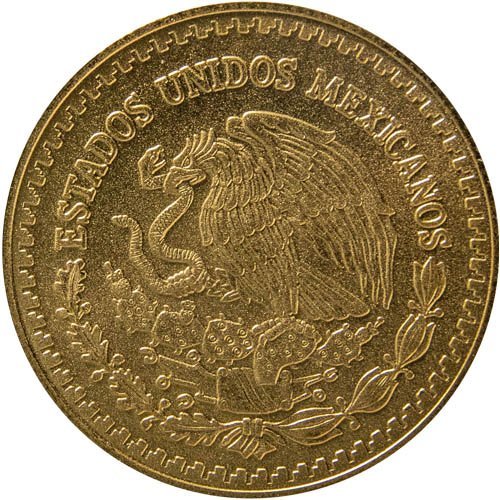 - On the obverse is the national coat of arms of Mexico.