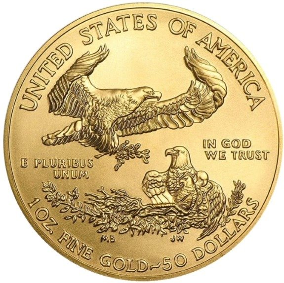 The 1oz gold Eagle coin is struck in 22 karat gold (.9167) and contains 31.10 grams of pure gold, it is official legal tender in the United States of America, with a value of $50.