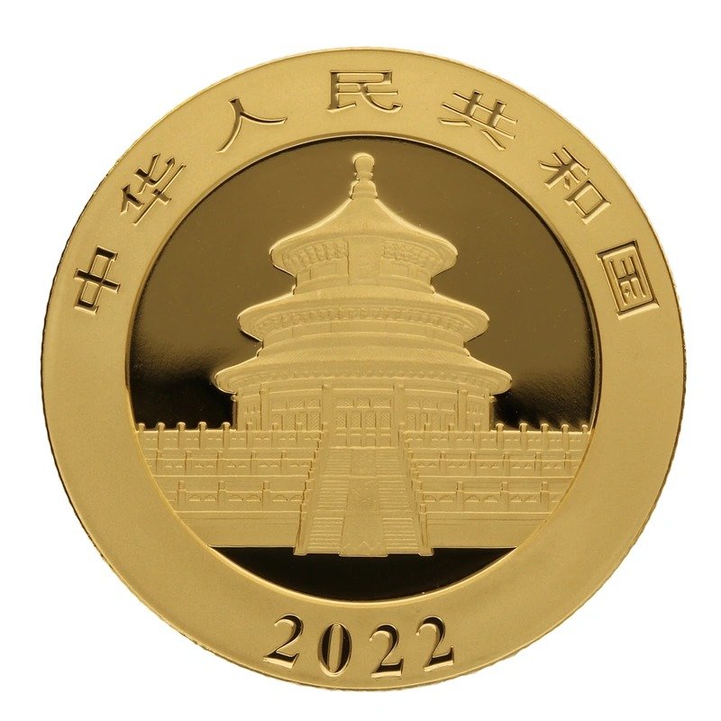 The 2022 15 Gram Panda is a Chinese gold coin, minted by the China Gold Coin Incorporation. The weight of the coin is 15 grams with a fineness of 999.9 (24 carat gold), this means it contains 15 grams of pure gold. The diameter of the coin is 27 mm. The 15g Gold Pandas have a face value of 200 Yuan and are legal tender in China.