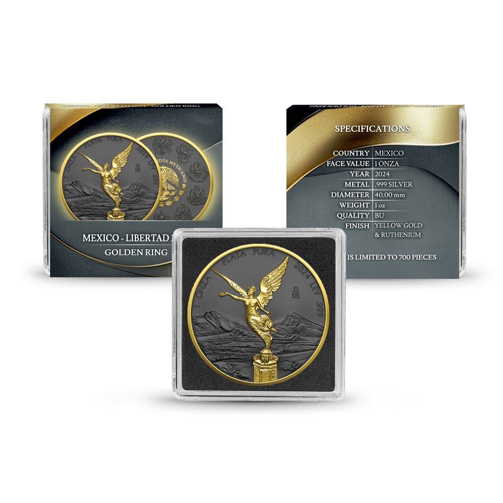 2024 1 oz Golden Ring Mexican Silver Libertad Coin (Ruthenium, Gilded, In Capsule)
