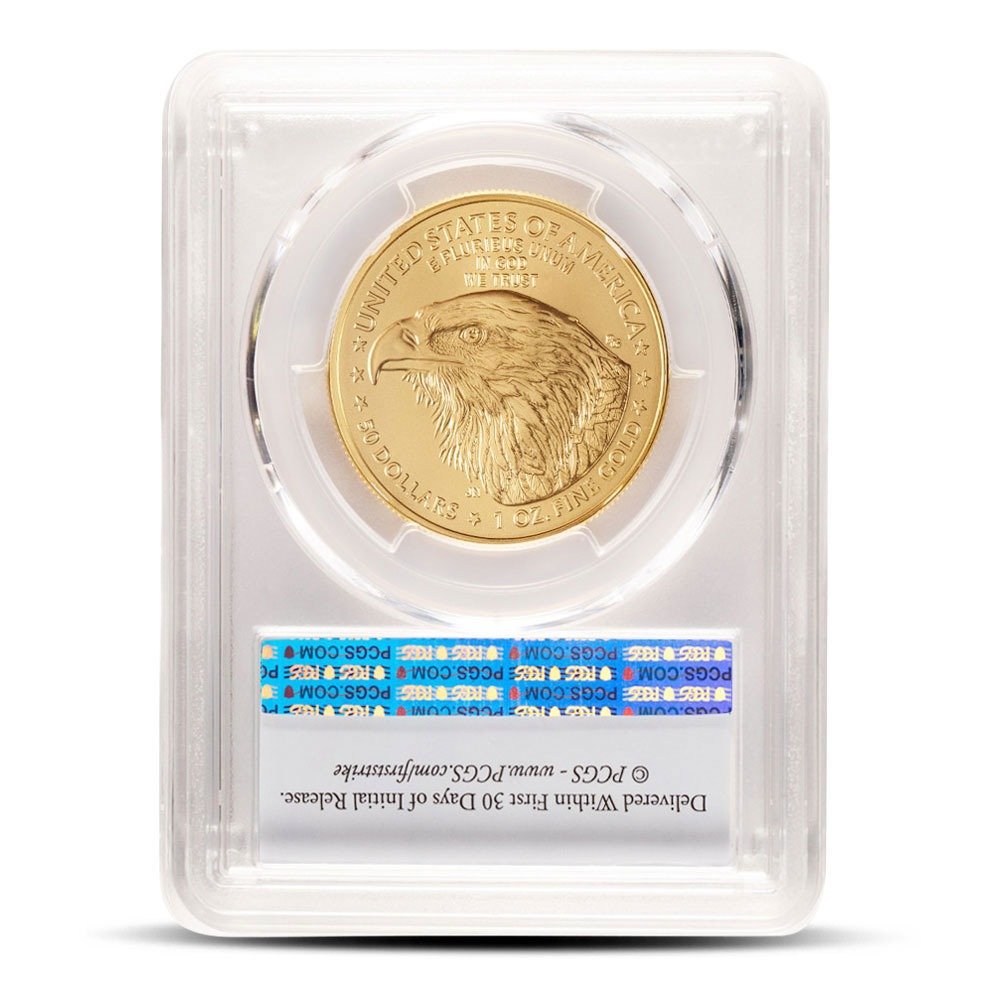 Each 2025 1 oz American Gold Eagle Coin offered here comes with a Mint State 69 certification. Coins with this grade are known as near-perfect specimens with full, original mint luster and a maximum of two minor detractions. These flaws are limited to minuscule contact marks or hairlines located outside the primary focal points. First Strike coins are those the PCGS receives for grading within 30 days of release from the mint.