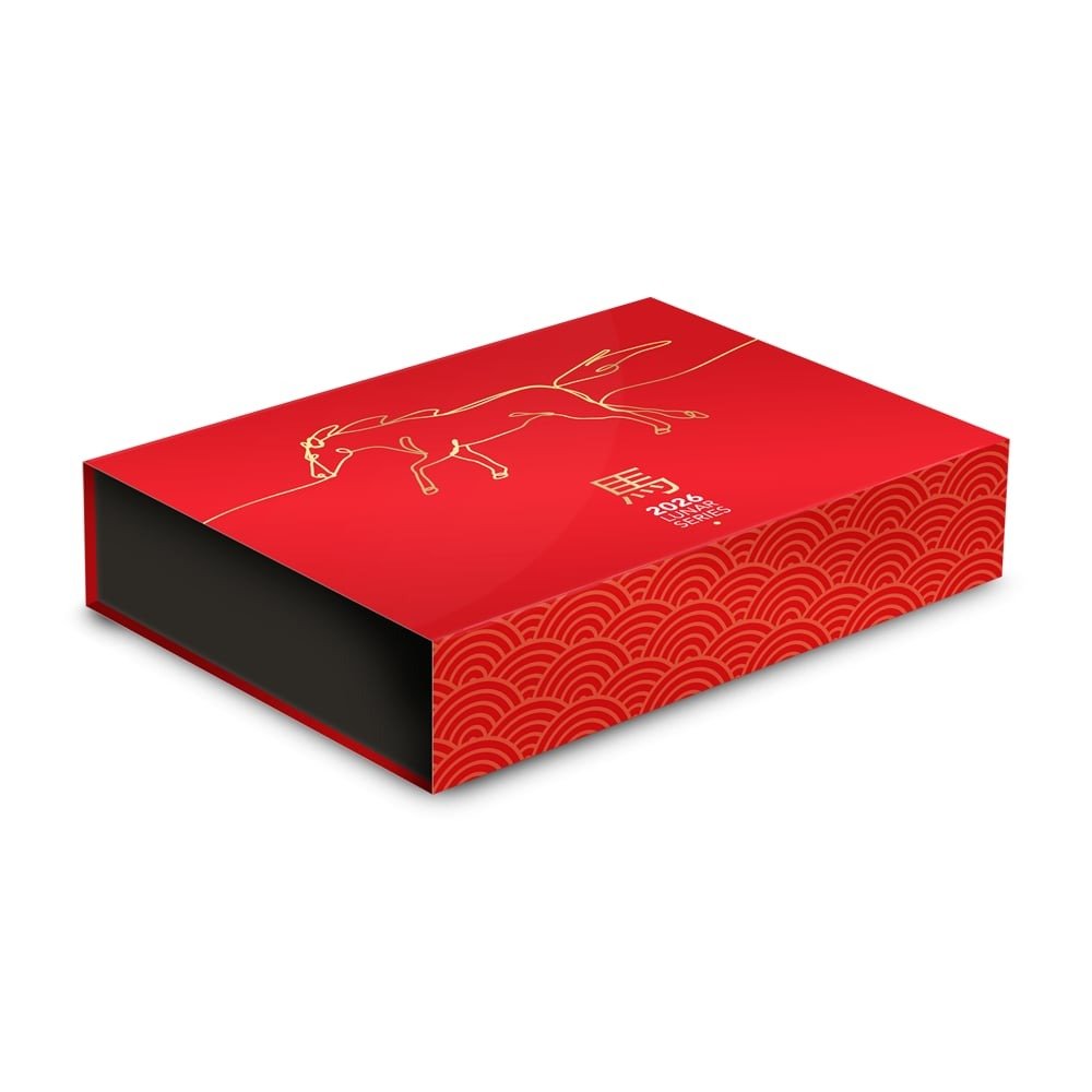 Each 2026 1 oz Proof Royal Australian Mint Gold Year of the Horse Domed Coin comes with individual packaging. The coins are protected within capsules and housed in a presentation box from the Royal Australian Mint. Each coin comes with a red outer shipper and a Certificate of Authenticity. The domed coin features a concave reverse field with a raised, convex obverse side.